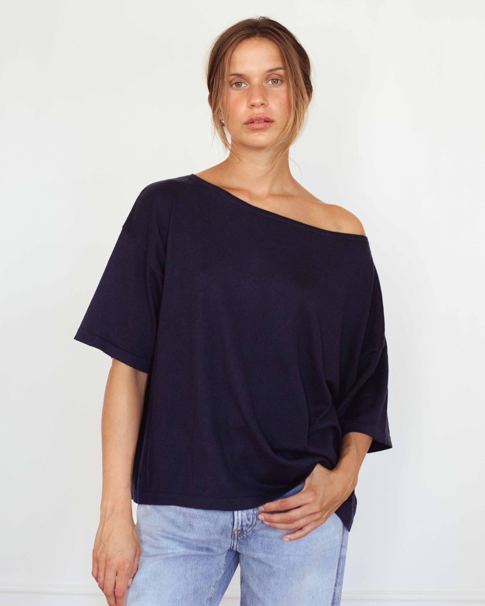 This off-shoulder top is crafted from cotton cashmere with a loose, effortless fit. Soft on the skin and designed to fall naturally off the shoulder.