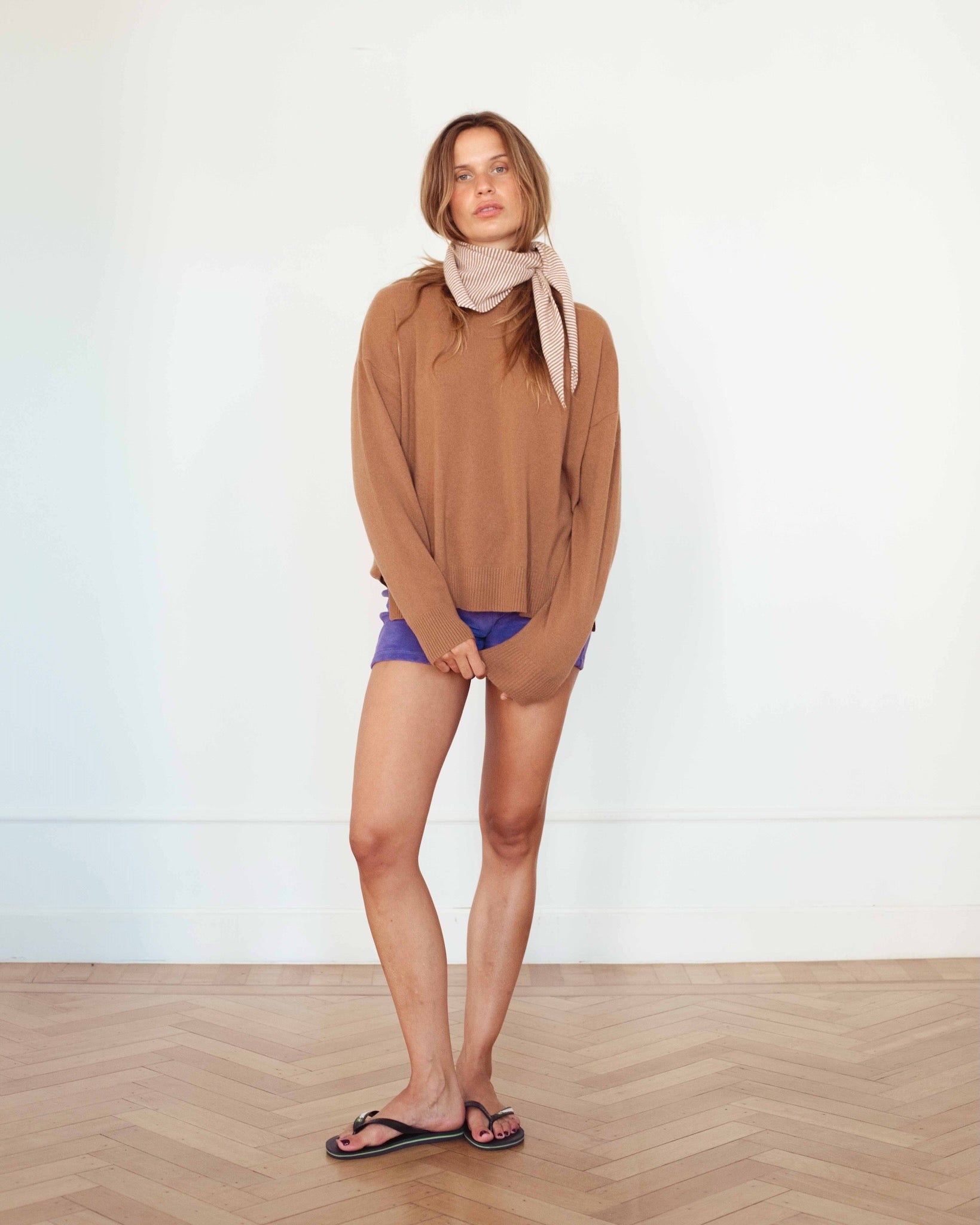 This striped triangle scarf is made from pure cashmere with a light, gentle feel.