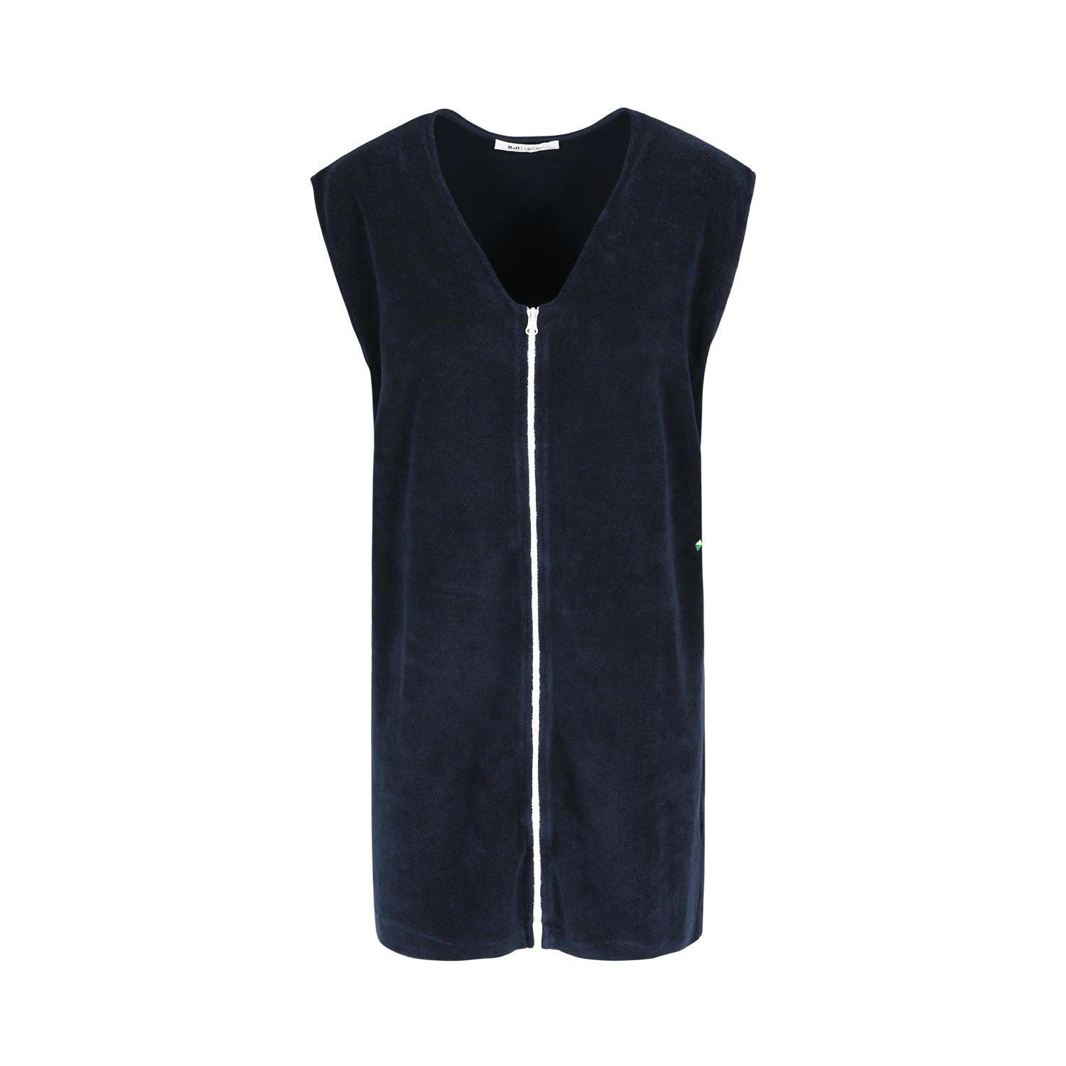 A short terry towelling dress in a relaxed one size fit. Finished with a contrasting white zip for a clean, sporty touch.