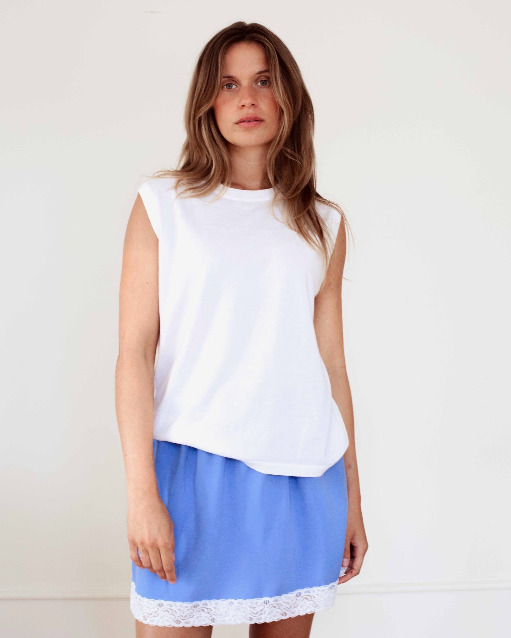 A soft viscose skirt finished with delicate lace at the hem. Light, comfortable and simple to style. Pair it with a tee or knit for an effortless look.